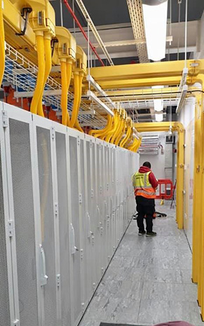 The plenum space is generally between the structural floor and the suspended ceiling, via use of a raised platform floor or in some cases a purpose-built plenum room.